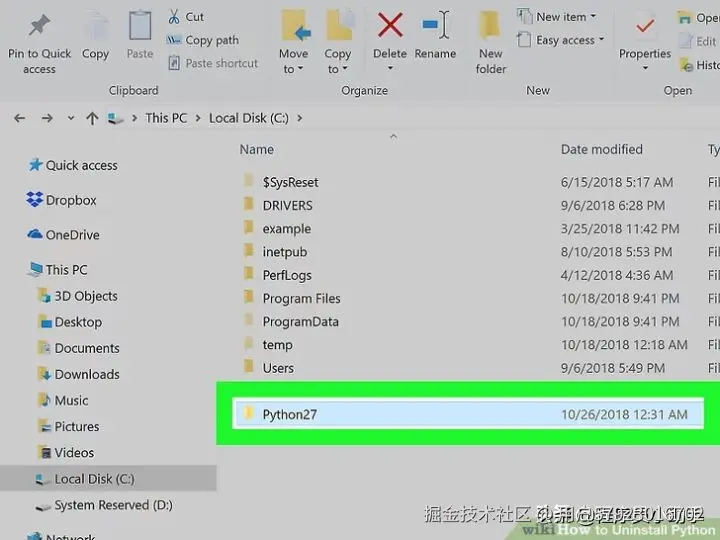 虽然卸载Python 3会从您的计算机上删除Python 3文件夹,但即使您卸载了Python 2的程序,Python 2文件夹也会保留下来。要删除该文件夹,请执行以下操作:
