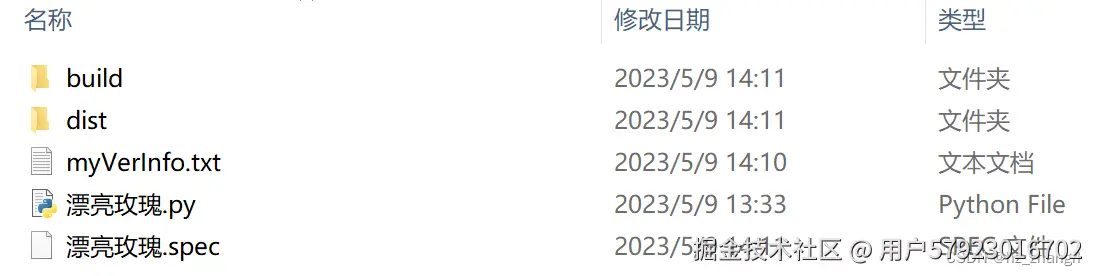图3 执行pyinstaller -F --version-file=myVerInfo.txt 漂亮玫瑰.py后的文件夹
