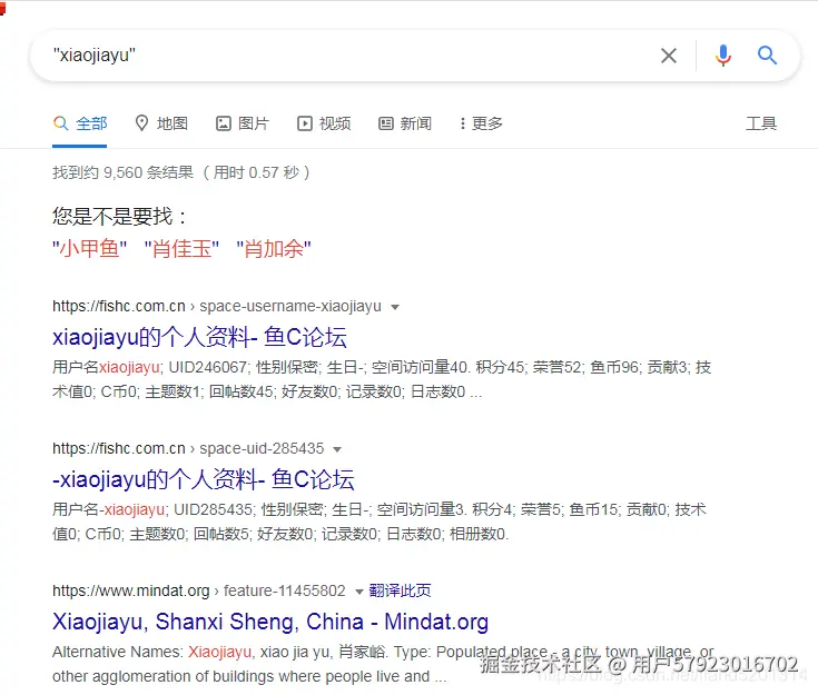 返回的结果几乎全都是和鱼 C 论坛相关的: