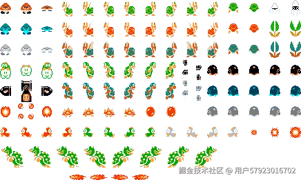 游戏里的所有怪物对手,也都是来自下面这一张图而已,然后游戏中只是提取中怪物在图片对应的位置,所以并不占什么存储空间