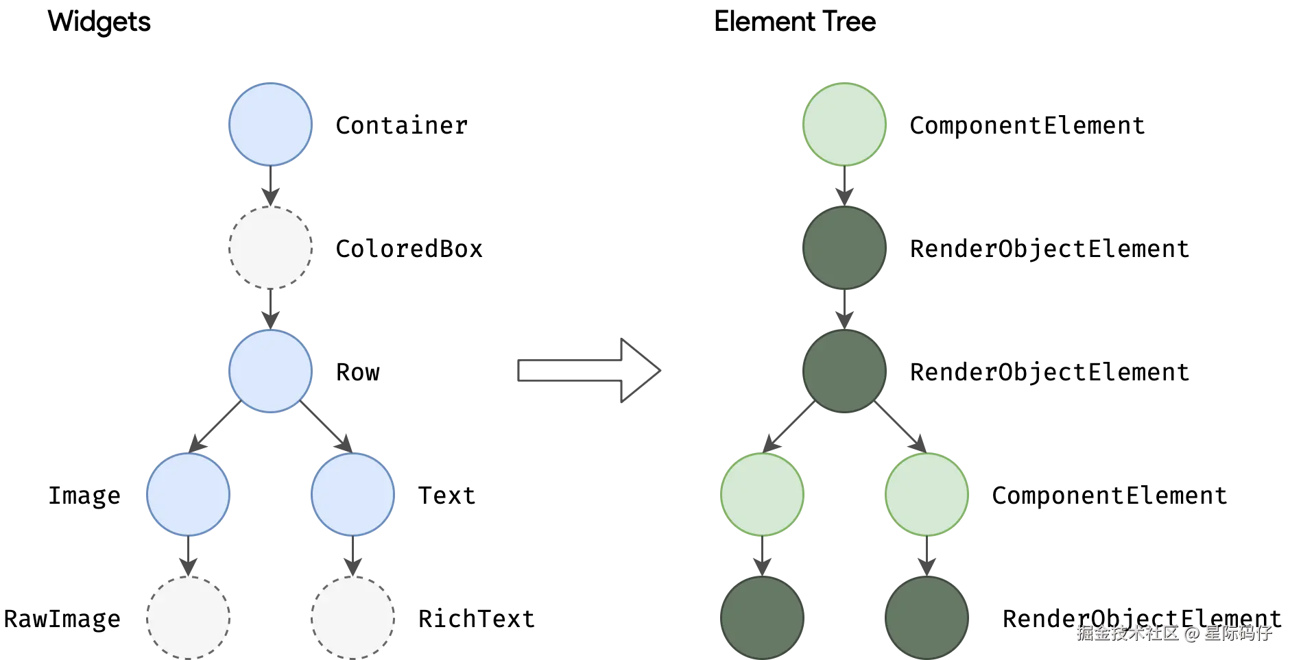 - RenderObject 树——实际 UI 渲染