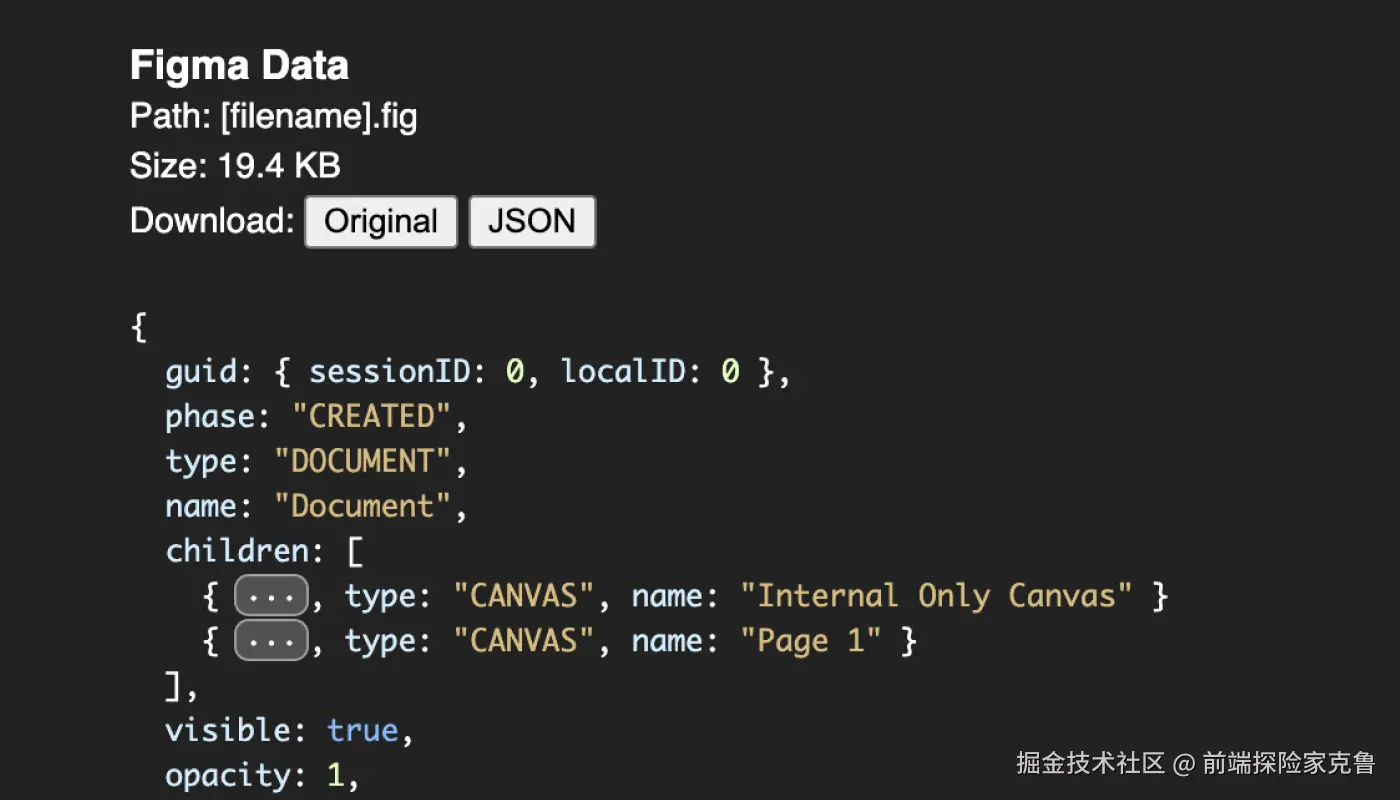 然后,我将生成的 blob 下载为.fig文件,并将其上传到.fig文件解析器,结果如下: