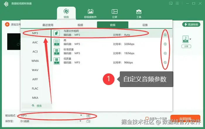 音频转mp3方法2:数据 蛙视频转换器