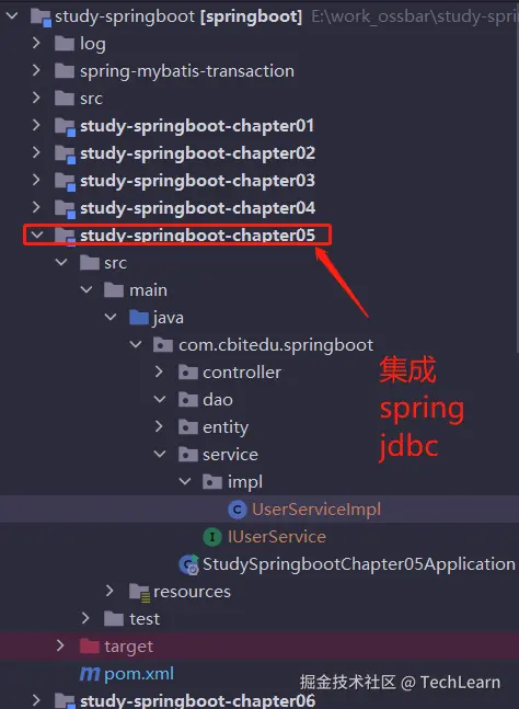 使用IDEA开发工具构建一个项目多模块工程。study-springboot-chapter05学习关于Springboot集成JDBC知识点