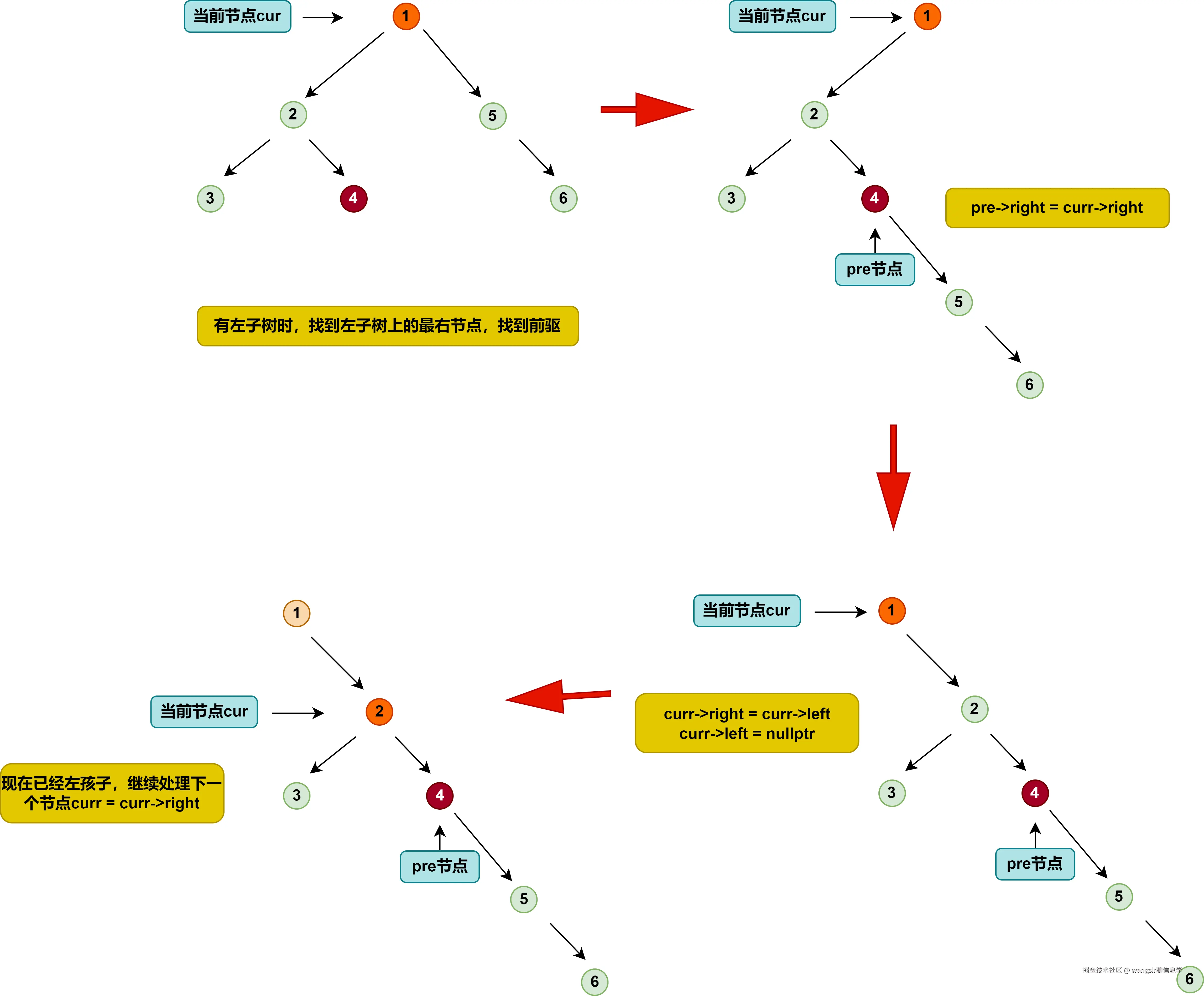 - 前驱节点的右子节点 = 当前节点的右子节点