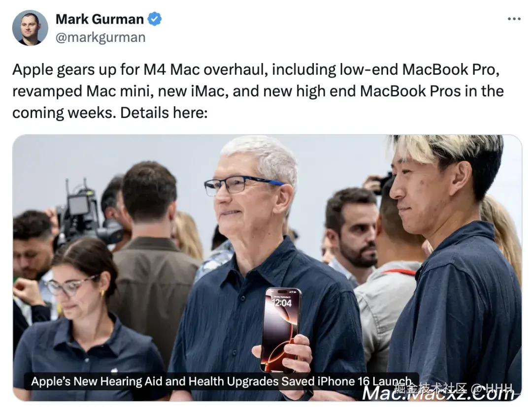 彭博社的马克・古尔曼(Mark Gurman)在今天的 Power On 时事通讯中重申,苹果计划在“未来几周”的下一场活动中发布首款 M4 Mac 和新款 iPad。他表示,一些 M4 Mac 已经从工厂发货。