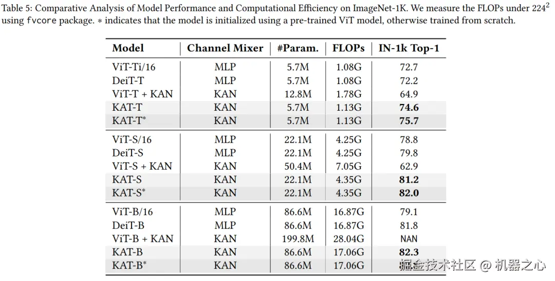 实验结果表明:GR-KAN 计算效率高、易于实现,并且可以无缝集成到视觉 transformer(ViT)中,取代 MLP 层以实现卓越的性能。此外,该研究的设计允许 KAT 从 ViT 模型加载预训练权重并继续训练以获得更好的结果。