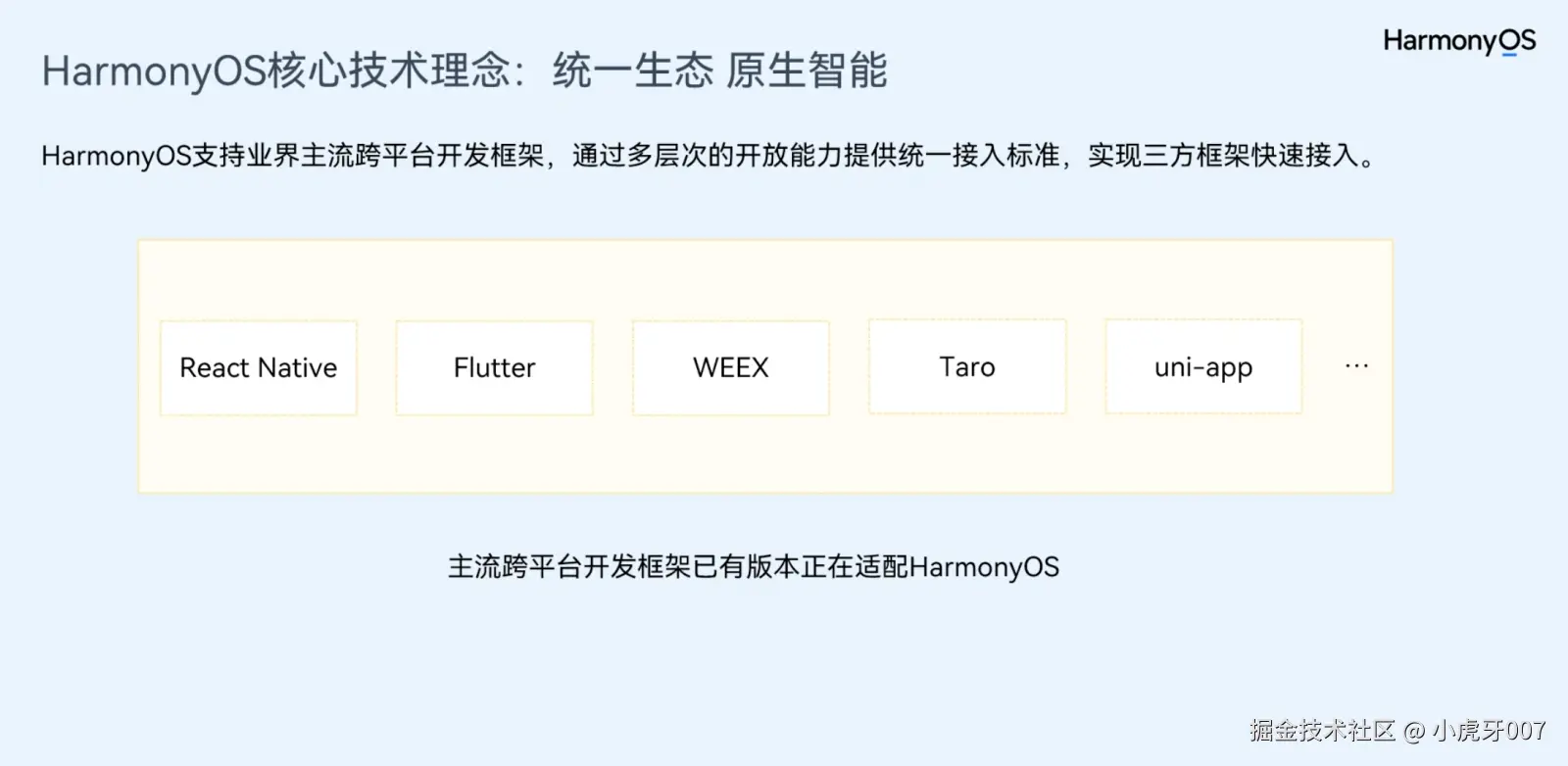 鸿蒙生态构建了ArkUI 跨平台框架的核心设施,将相应的能力扩展到iOS和 Android 平 台上,后续会进一步拓展到更多的平台。开发者可以通过一份代码,结合相应的工具链,同 时生成多个 OS 平台的应用工程,并可编译出相应的应用程序,在相应的平台上高效的运行。