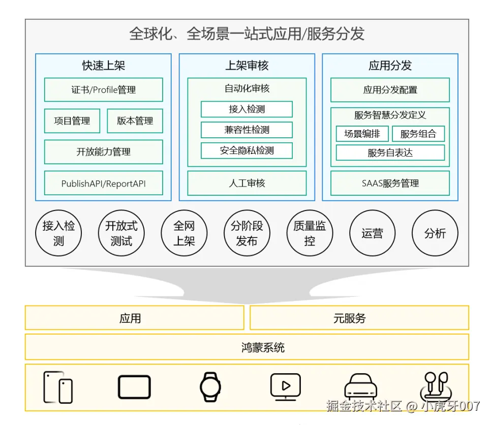 主要包括由HUAWEI AppGallery Connect提供的上架分发测试和运维分析两大能力