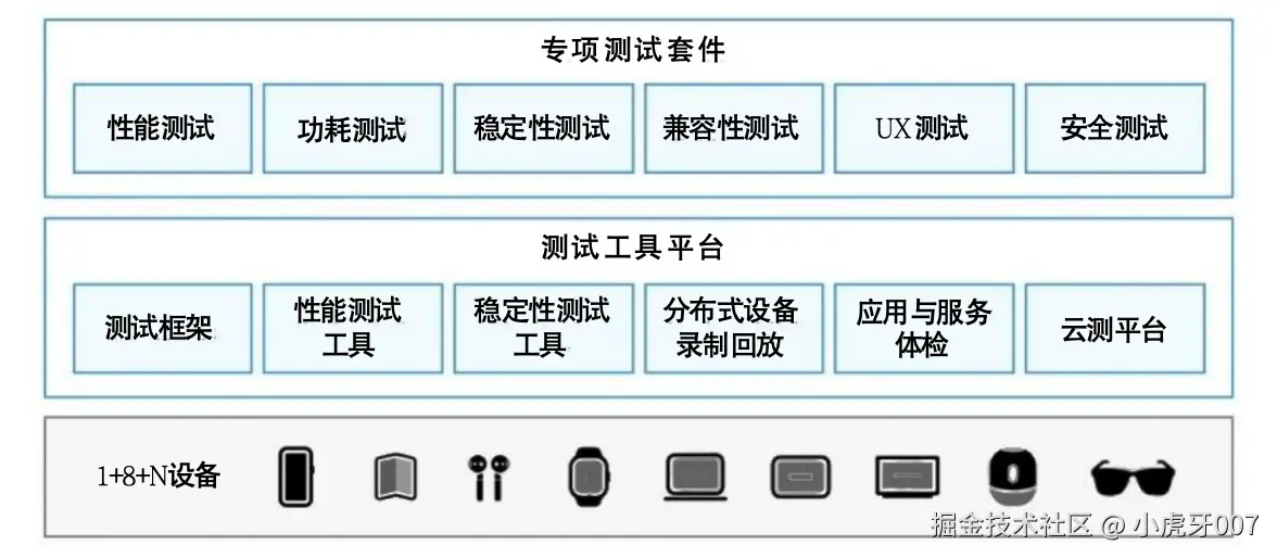 提供鸿蒙生态应用开发、调试、单元测试、集成测试、上架测试等各开发阶段所需的测 试工具集,支持手机、折叠屏、平板、智慧屏、手表、音箱等1+8+N 设备,帮助开发者全 面高效测试。
