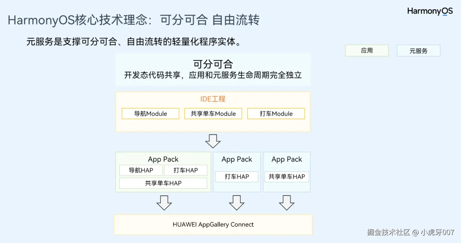 在分发运行态,单个 HAP 作为元服务分发满足用户单一使用场景,也可以多个 HAP 组合为应用分发满足用户更加复杂的使用场景。