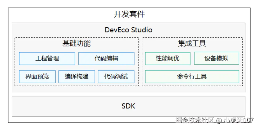 开发者在应用开发过程中使用到的产品集合,包含 HUAWEI DevEco Studio 以及HUAWEI DevEco Studio 集成的性能调优、设备模拟、命令行工具和 SDK。