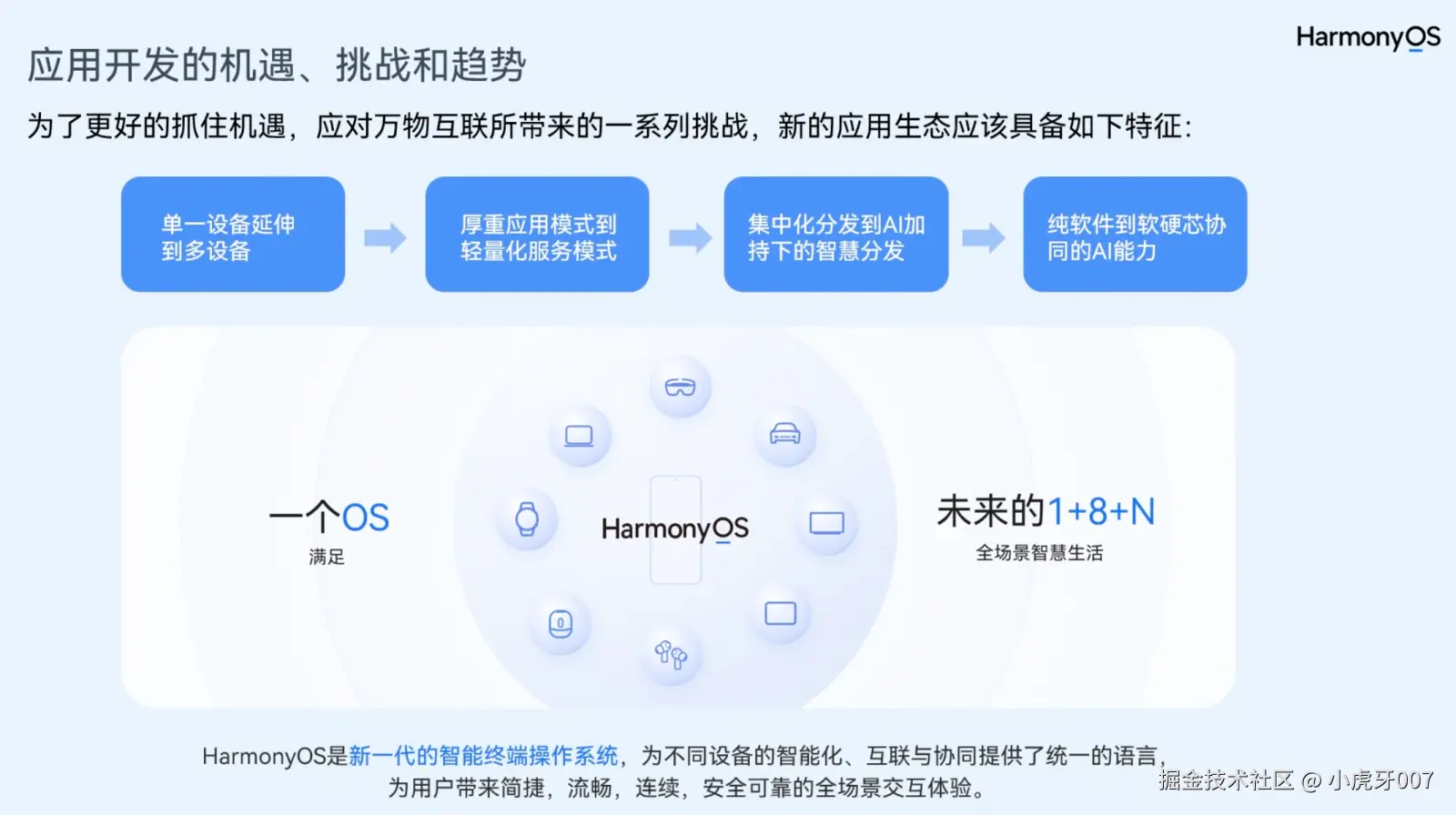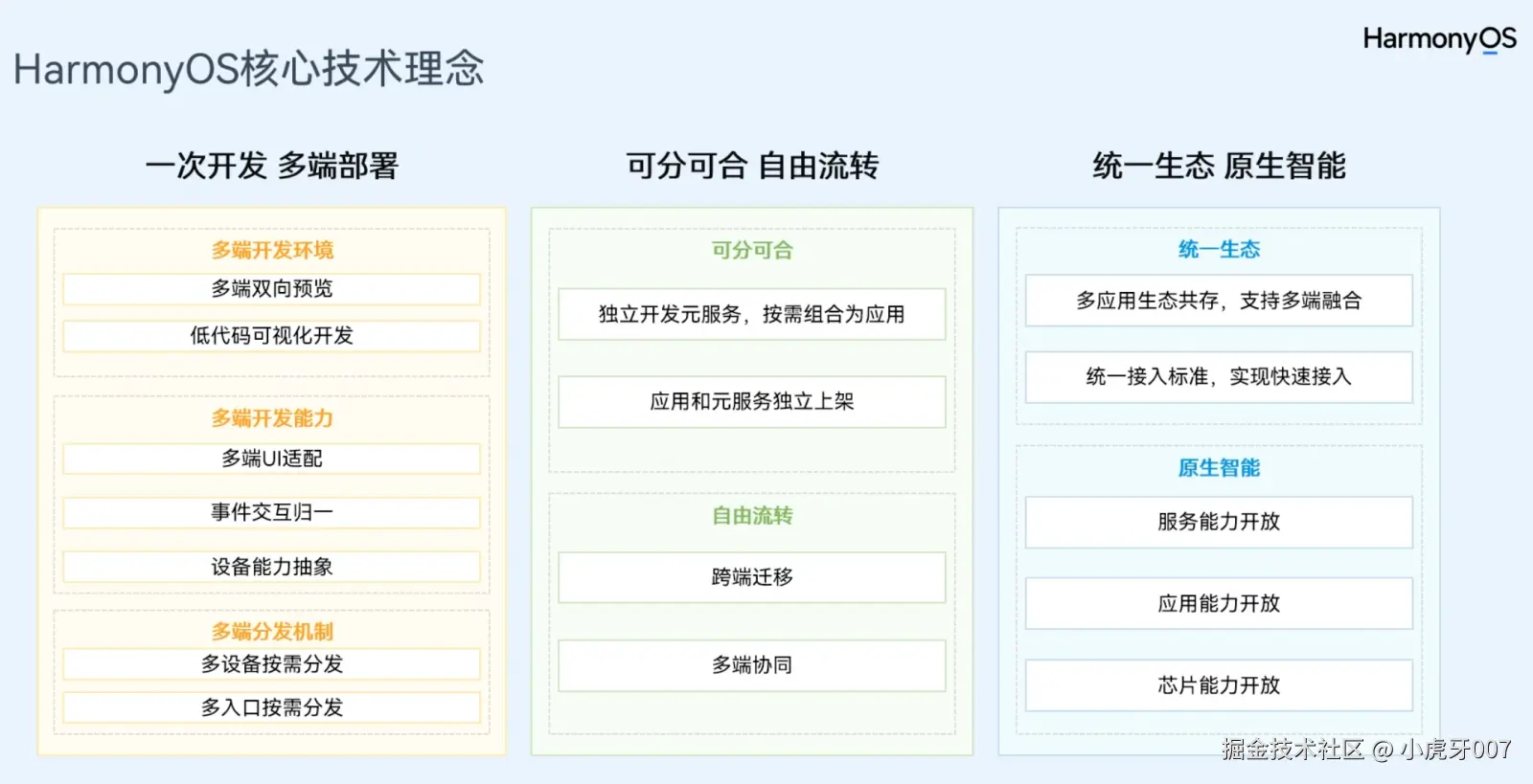 在万物智联时代重要机遇期,鸿蒙系统结合移动生态发展的趋势,提出了三大技术理念: