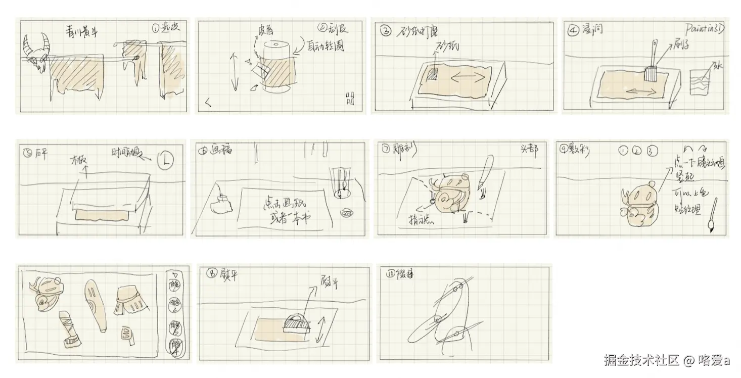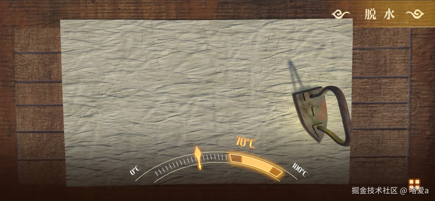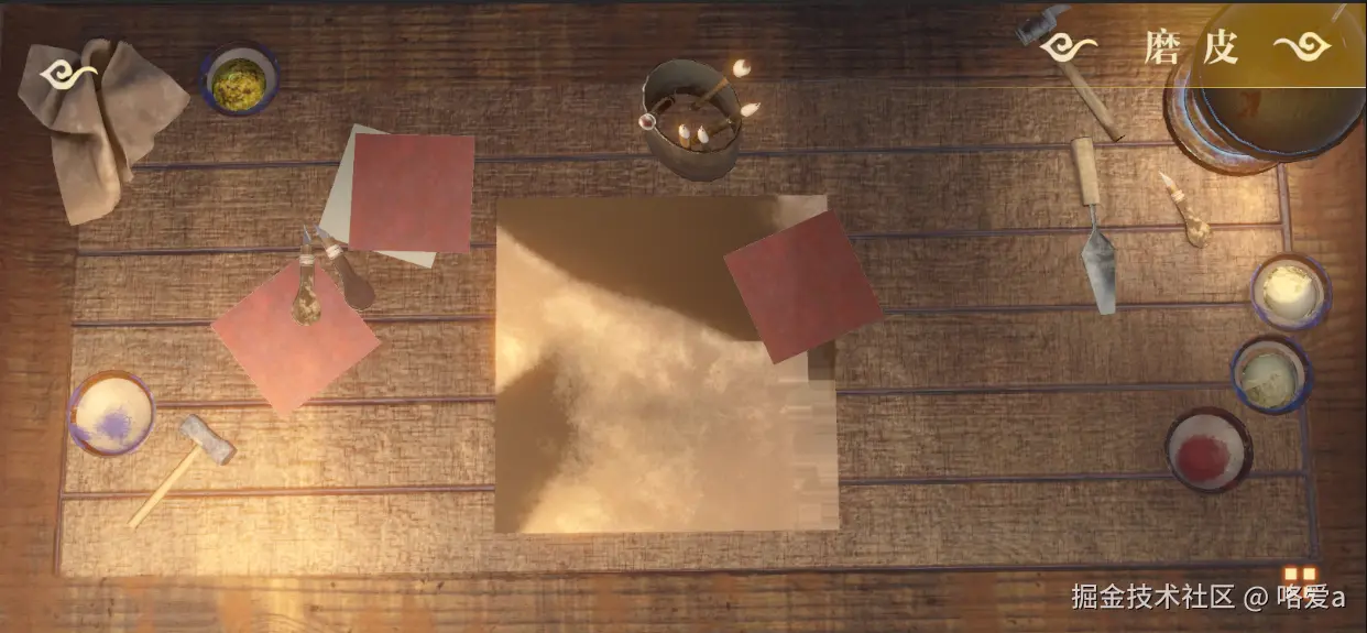 动效设计通常需要经过多个流程才能实现落地,首先需要结合需求本身进行思考,由于《弄影》是写实风格,模拟真实的操作,所以动效也尽量与现实的交互保持一致。当找好对应的参考依据后,指定相关设计思路,再用Adobe After Effects这类辅助工具进行设计预演,有了初步版本后,查看技术方案是否合适,先接入到程序中。之后不断的调试设计预演,迭代优化到最佳后,核验程序中的效果是否与设计一致,如果不一致,则需要在程序中调试效果,通常可以用程序暴露出的参数去调试动效。