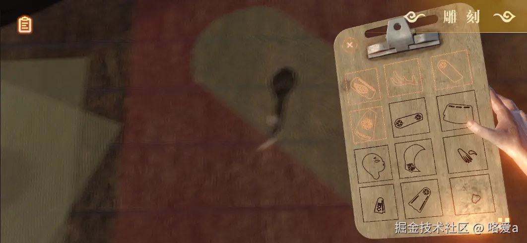 游戏中需要给物体增加反馈效果,高亮表示物体被选中,带有聚焦效果。而进度环则能够让玩家意识到流程目前的百分比。拖尾效果能让玩家了解刻刀走向,及时调整刻刀的转向。同样,相应的新手指引,能够让玩家更好的进行下一步操作,避免迷茫。