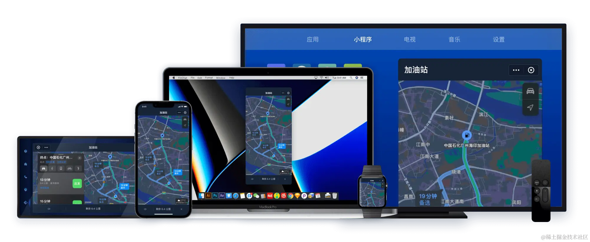 - 多平台终端的兼容: 该技术自带终端小程序SDK,简单集成了之后就可以在 iPhone,Android,Windows,Linux,macOS等平台下运行你的小程序。