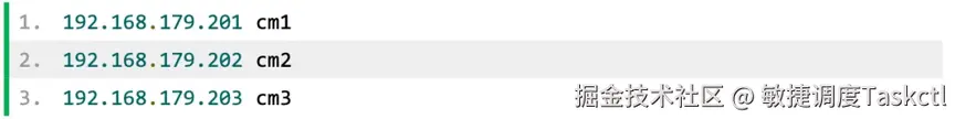 三台节点配置的 ip 分别为: