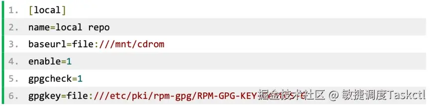 以上内容中 baseurl 是指 Yum 源的地址,该路径下有个 repodata 目录,就是 yum 安装源目录。file://表示 yum 源为文件。