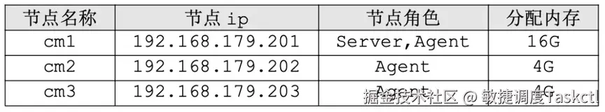 截止到这里,以上只是准备好的三台划分好内存和核心的空节点。