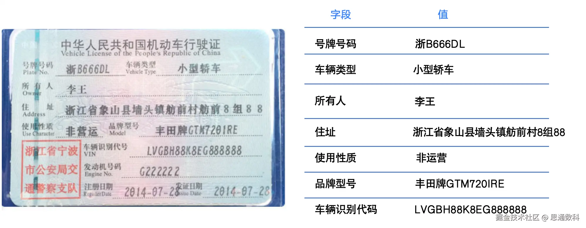 应用场景:识别多种类型的证件,如车辆合格证、身份证、驾驶证、不动产权证等。