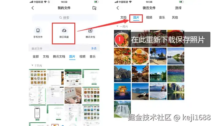 步骤2:找到 【微云网盘】 选项,点击 【图片】 重新下载保存您需要的照片。