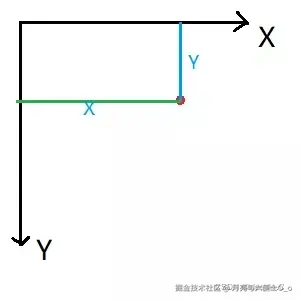 - 垂直方向为 Y 轴,向下移动表示 Y 值增加,即 Y 轴正方向指向下方。