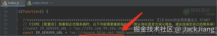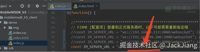 ▲ 配置要连接的服务器IP(以上代码详见demo/index.js 文件)