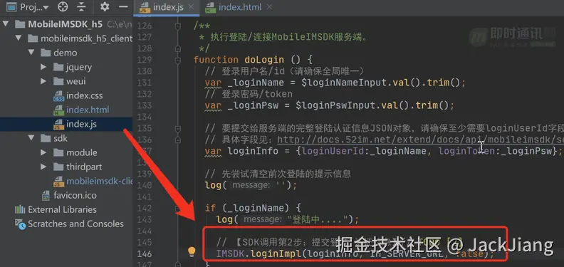 第三步:在你的JS文件中调用IM的登陆方法即可(具体例子详见Demo中的index.js文件)