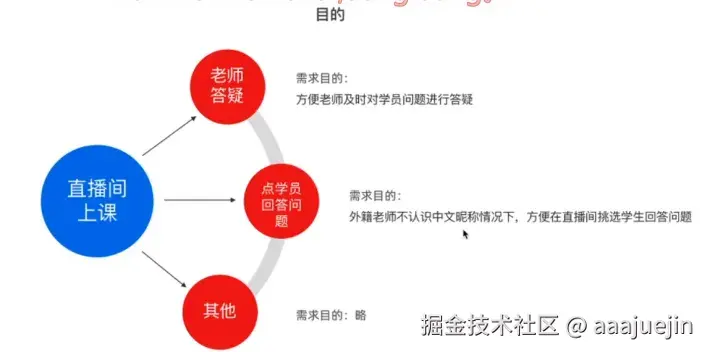 2.外籍教师在直播间上课过程当中,涉及到想要点学生发言,但老师由于不认识中文,所以没法直接在直播间点名,所以他自己想出的方案是,在直播间让学生能直接举手并邀请对应的人进行问题的回答