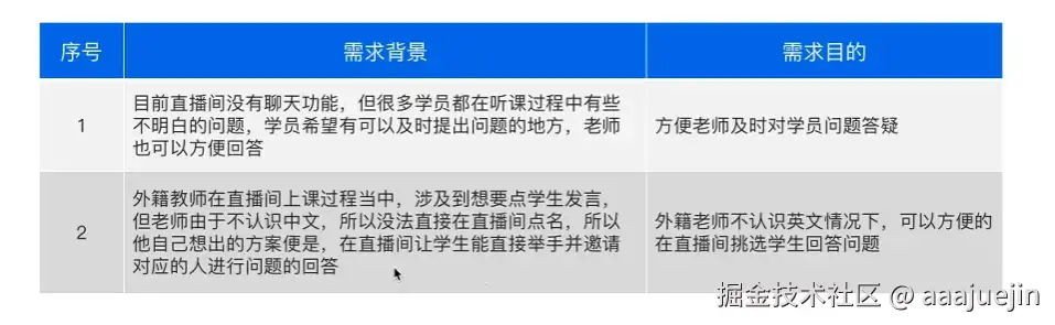背景:传智某个毕业学员P小M入职了一家做在线英语培训的公司,公司有很多外籍教师,学员大都为中国学生。目前公司的产品经理在每周对需求池当中的原始需求进行整理分析时,发现之前有个叫Zoe的外籍老师上周提出了如下需求: