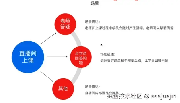 直播间上课场景:「老师答疑、点学员回答问题、其他」