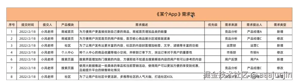 主要记录的是基于收集到的需求,进行分析后的相关信息,在工作当中可以采取直接在需求池当中再加上上面表格当中列举的字段,也可以采用单独创建一张上面的需求分析记录表的方式来进行
