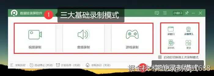 第二步:在软件的主界面,我们可以根据需求选择不同的录制模式,在此以 【视频录制】 模式演示操作步骤。