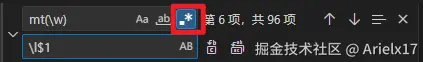 - 搜索框已经将需要使用的字符串用 "()" 包裹起来了,在替换框就可以作为变量使用了,每一个括号内=一个变量,变量名从前往后依次是