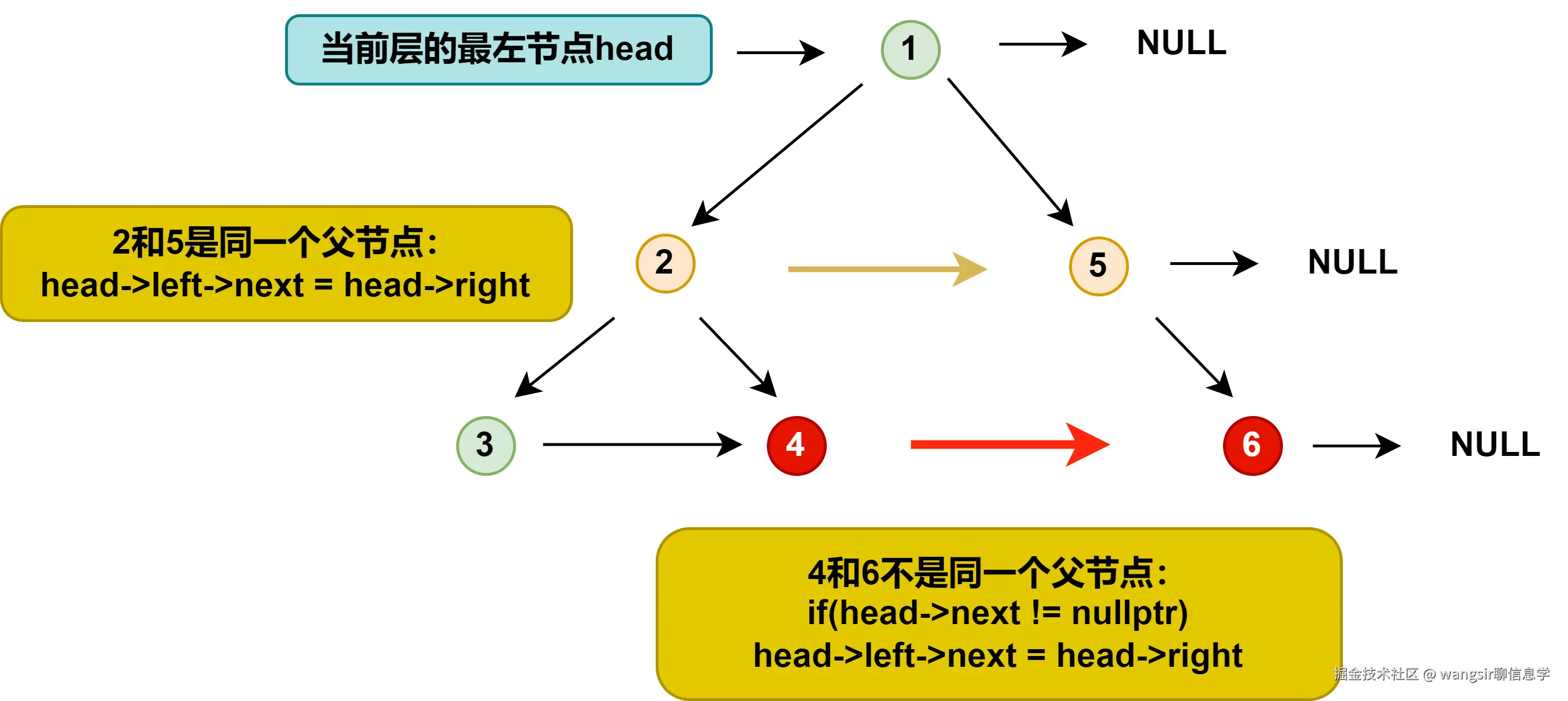next指向右孩子root->left->next = root->right - 该节点的右孩子的