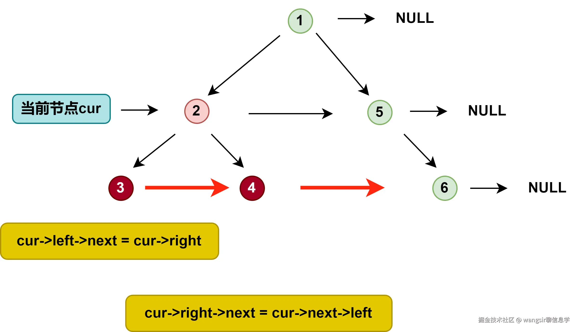 注意:树中的每一个节点的 next 默认情况下指向nullptr。