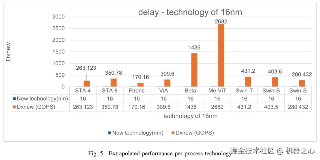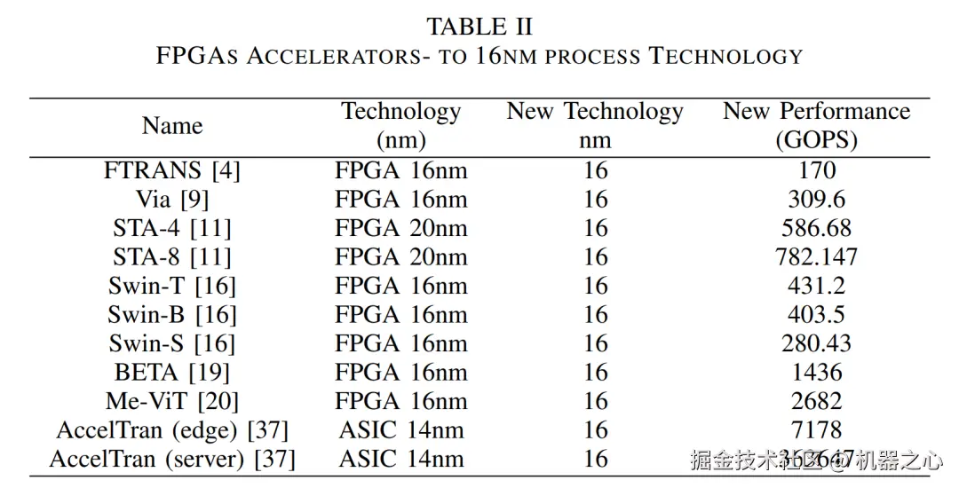 下表 II 展示了 16nm 工艺下,不同硬件加速器的外推性能。
