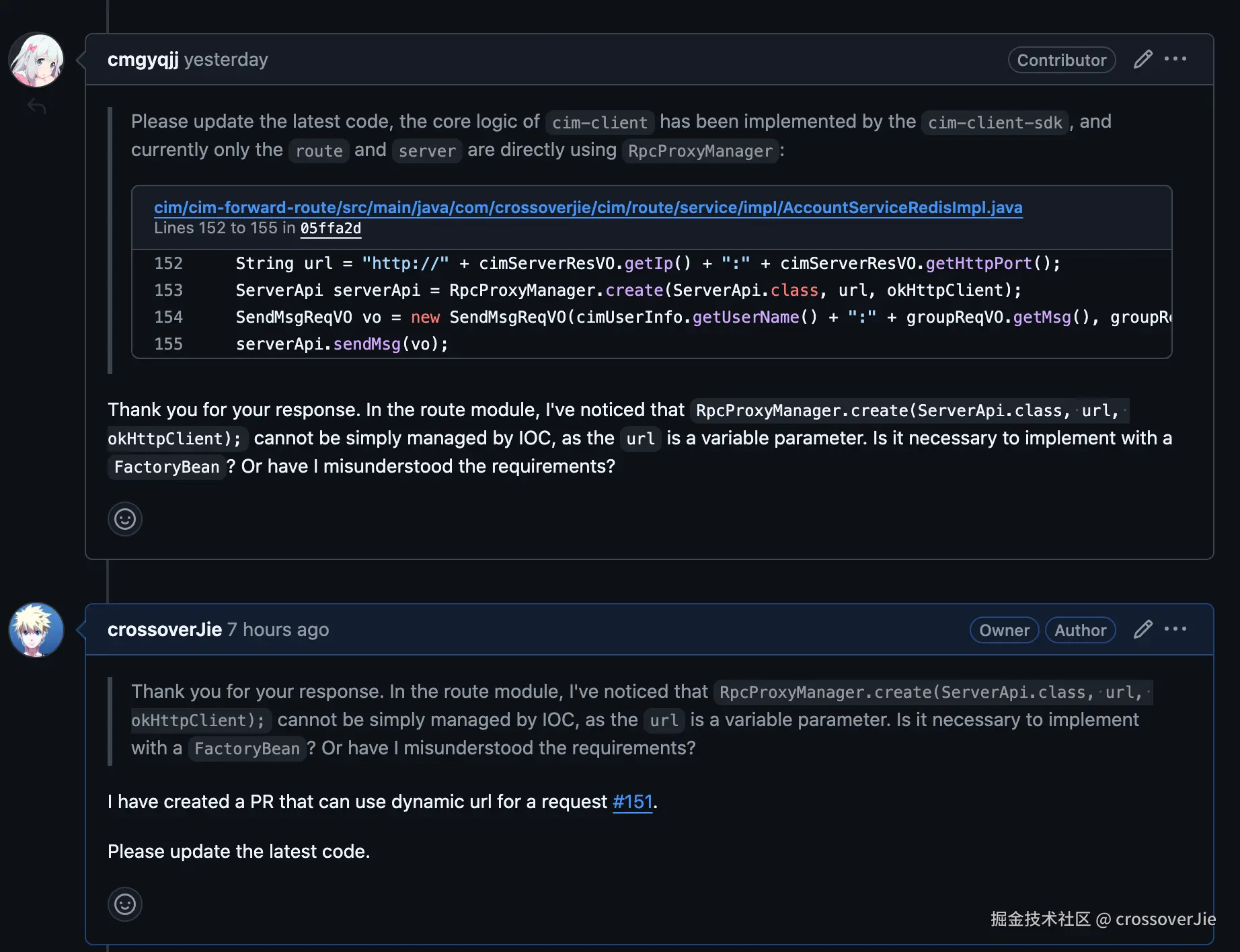但有网友在实现过程中发现,有个场景的请求地址是动态的,如果是交给 Spring 管理为单例后是没法修改 URL 地址的,因为这个地址是在创建对象的时候初始化的。