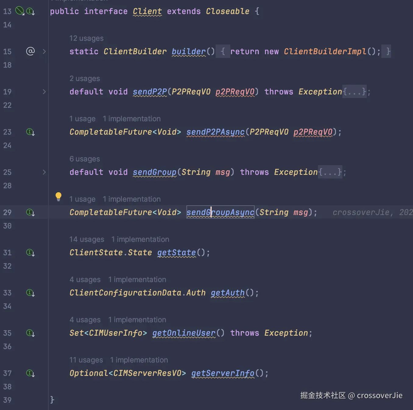 比如由于创建客户端需要许多可选参数,于是就提供了 Builder 模式的创建选项: