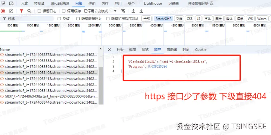 进一步排查调用的接口是否正常。经排查发现,在下载接口中,返回的地址少了record参数,正常的为:api/v1/record/downloads/xxx。