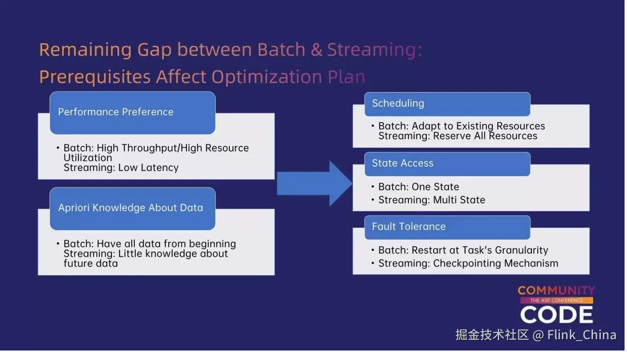 由于前提条件不同,Flink 在流模式和批模式下采取了不同的优化策略。这些策略主要体现在资源调度、状态访问和容错机制等方面: