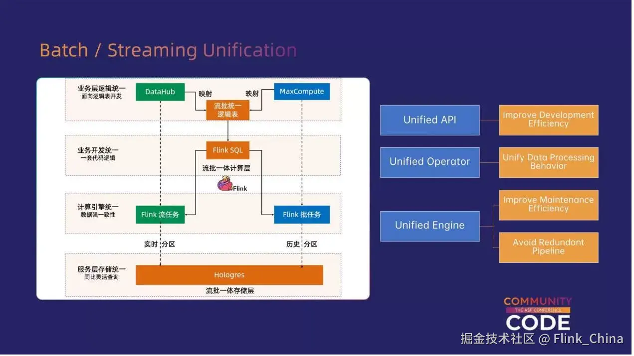 (3)引擎统一:使用同一个引擎和同一套资源调度框架,避免了为流作业和批作业搭建不同工作流的需求,从而优化了运维效率。