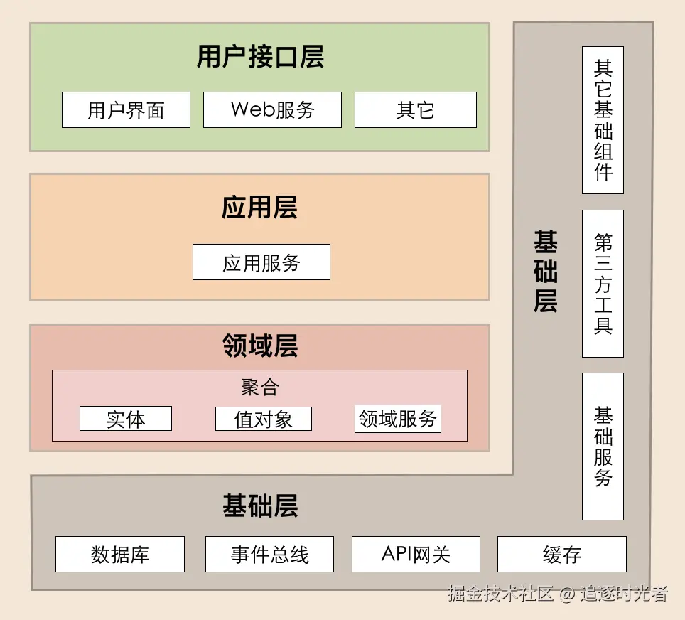 - 基础设施层(Infrastructure): 提供技术基础设施支持,如数据库访问、消息队列、缓存等。