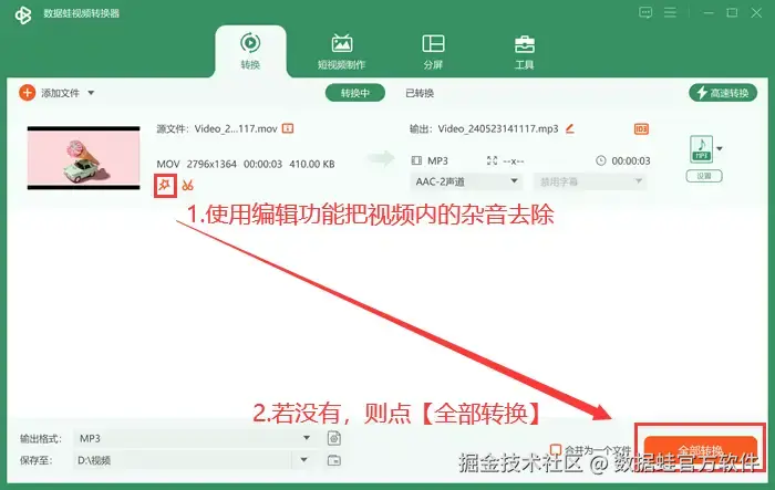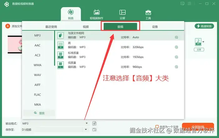 视频转mp3方法3:数据 蛙视频转换器