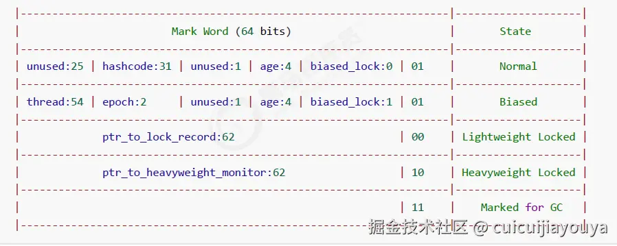 Mark Word 结构:最后两位是锁标志位