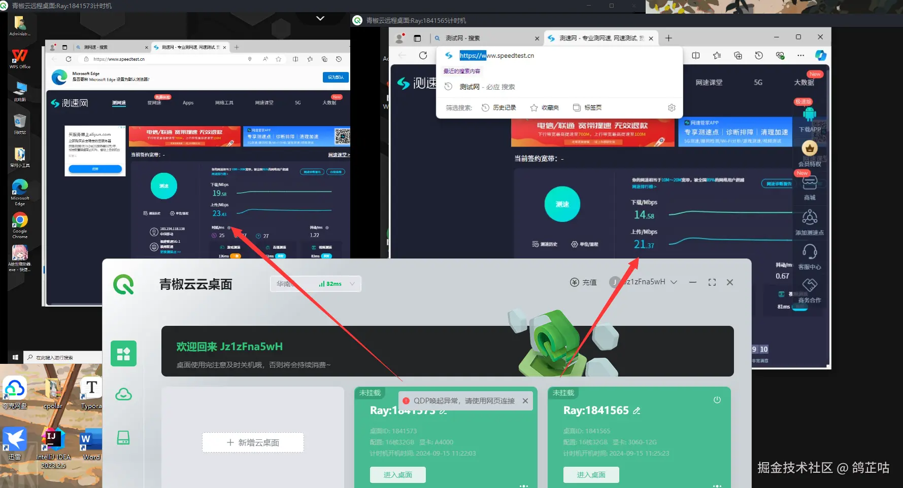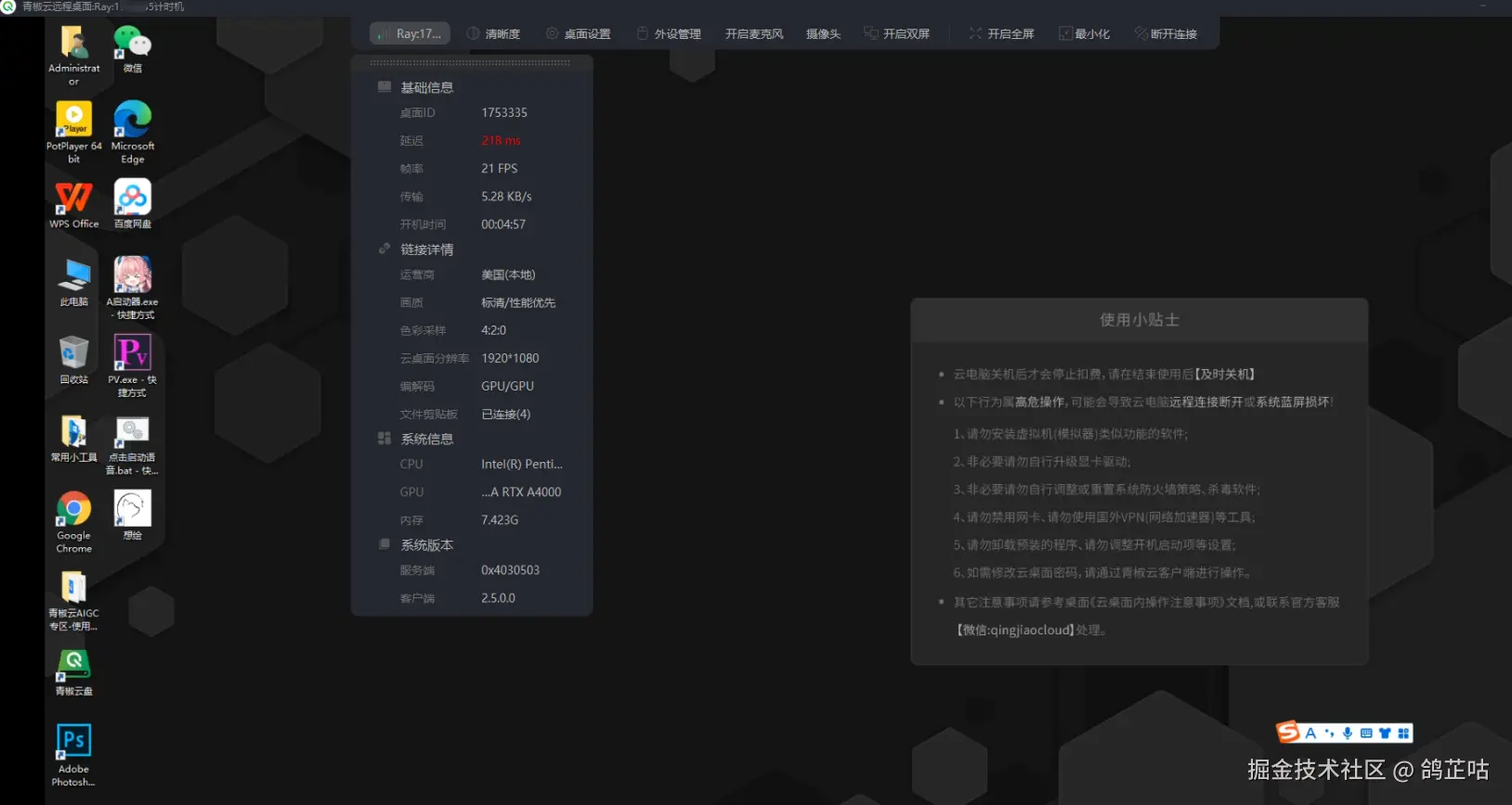 咱们的青椒云就不得不提一嘴了,为了测试我还专门开了俩台高性能电脑来测试,一台是A4000的显卡。而实际测试结果却一言难尽。。。。