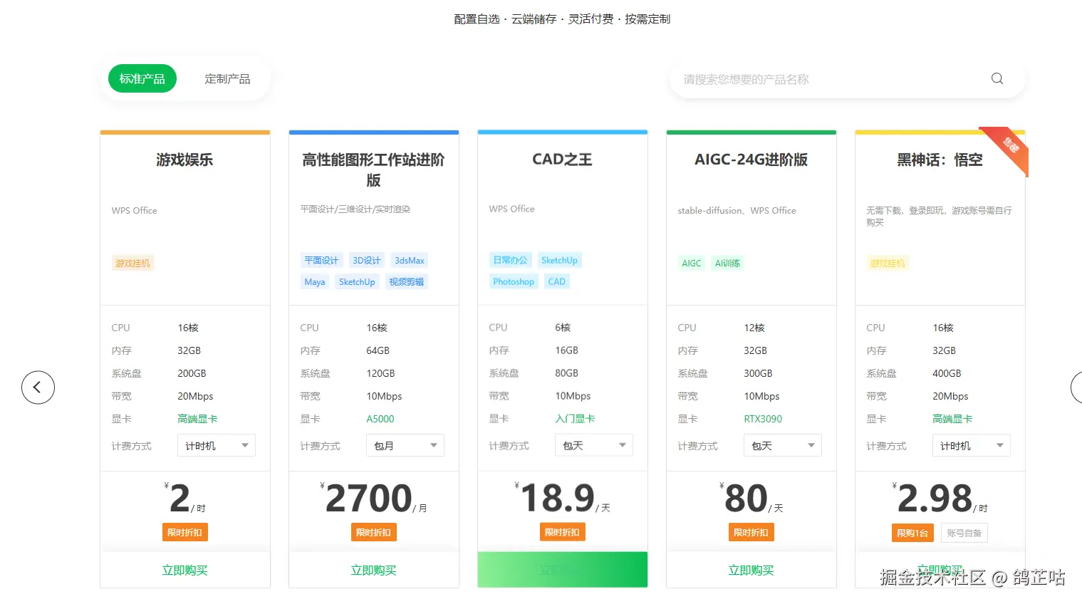 | AMD 8核 | RTX3060 | 32GB | 2.9元/小时 | |