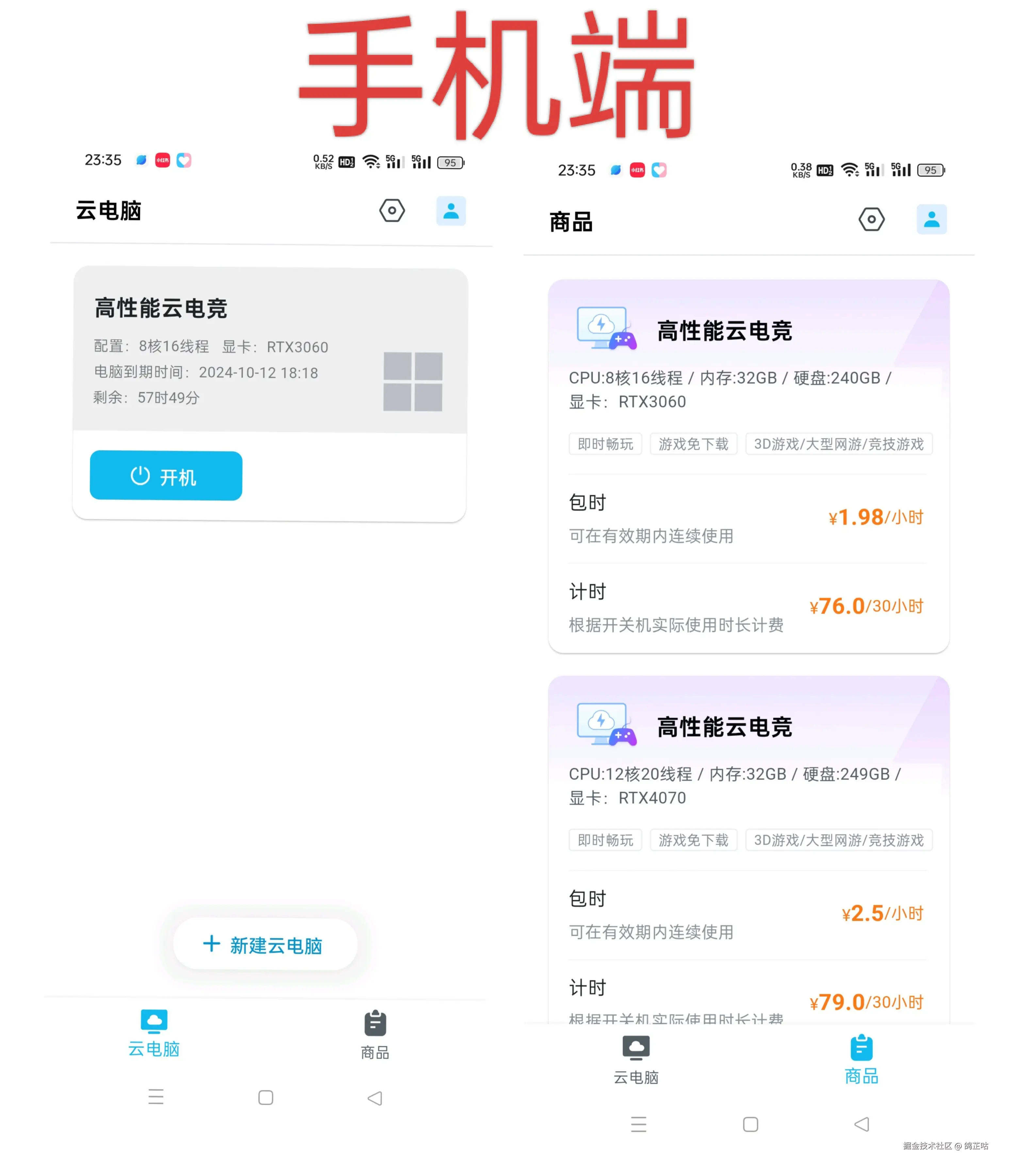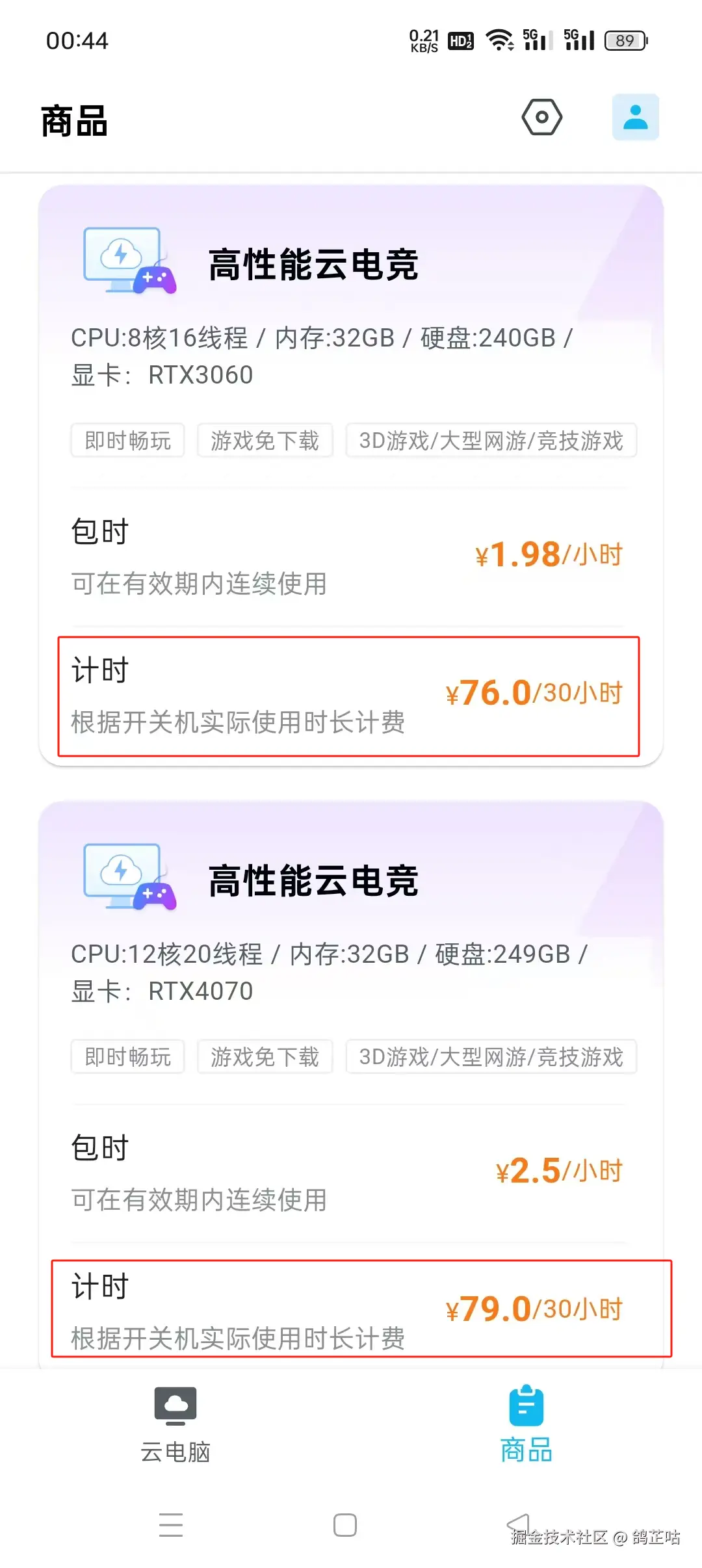 并且这里经常有需求云电脑的兄弟(我强烈推荐大家)直接购买计时服务,RTX4070 仅仅比 RTX3060贵了3元就可以体验到了。还可以随开随关来使用,使用上更随心。