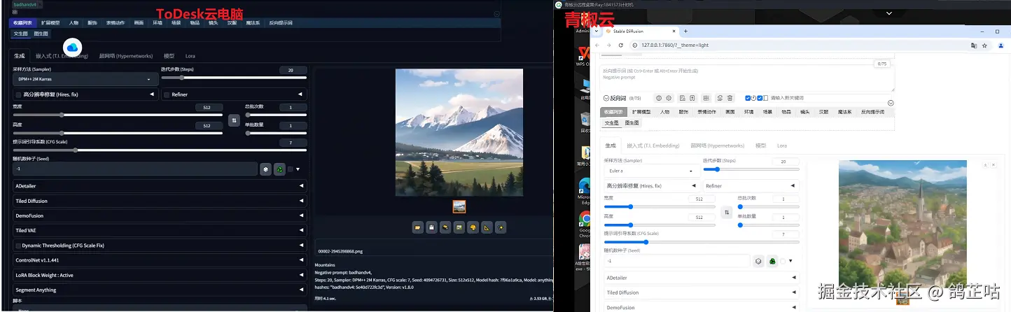 ToDesk云电脑在这一方面AIGC这方面目前并未配置,却可以自行部署的,借用秋叶大佬的Stable Diffusion进行图文训练实测下来也十分流畅。