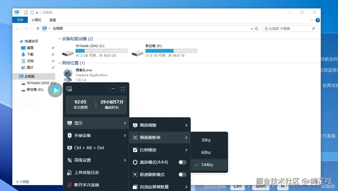 这里上传的视频画质是被压缩了的,但实际体验上画质非常棒, 我们可以根据实际情况选择 2K 和超清高清等,并且传输画面帧率也可以达到144帧,想要更流畅的体验,可以参考官方给出的设置参数(去微信公众号查看)。